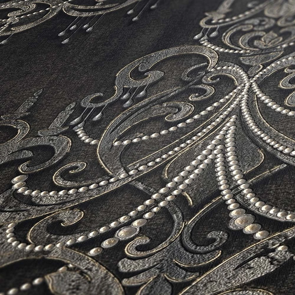 Tapete Vlies Ornamente Barock Anthrazit Gold 38096-4