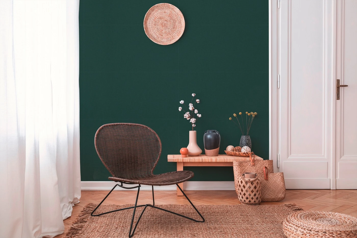 Tapete Vlies Textil Uni Dunkelgrün Livingwalls 37953-3
